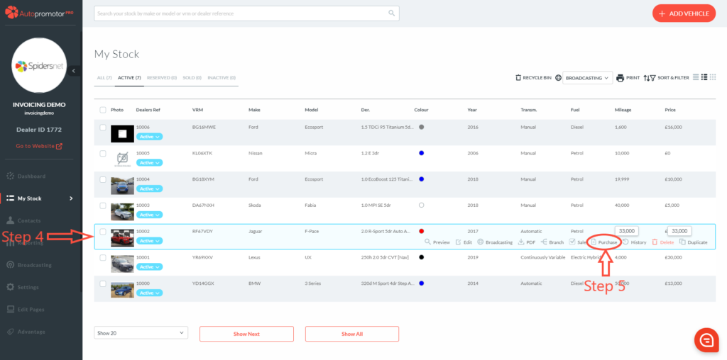 Click here to follow our guide on where to add in vehicle purchase details
