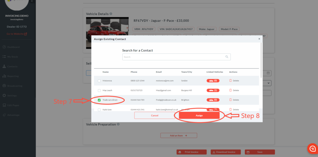 7. ‘Assign Existing Contact’ box will appear. Select the seller from your list of contacts.