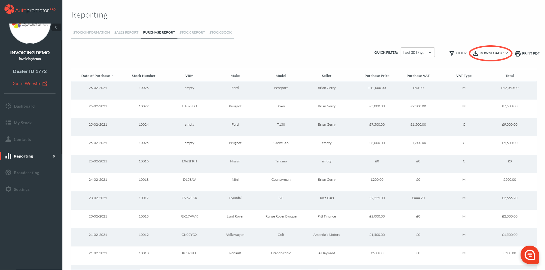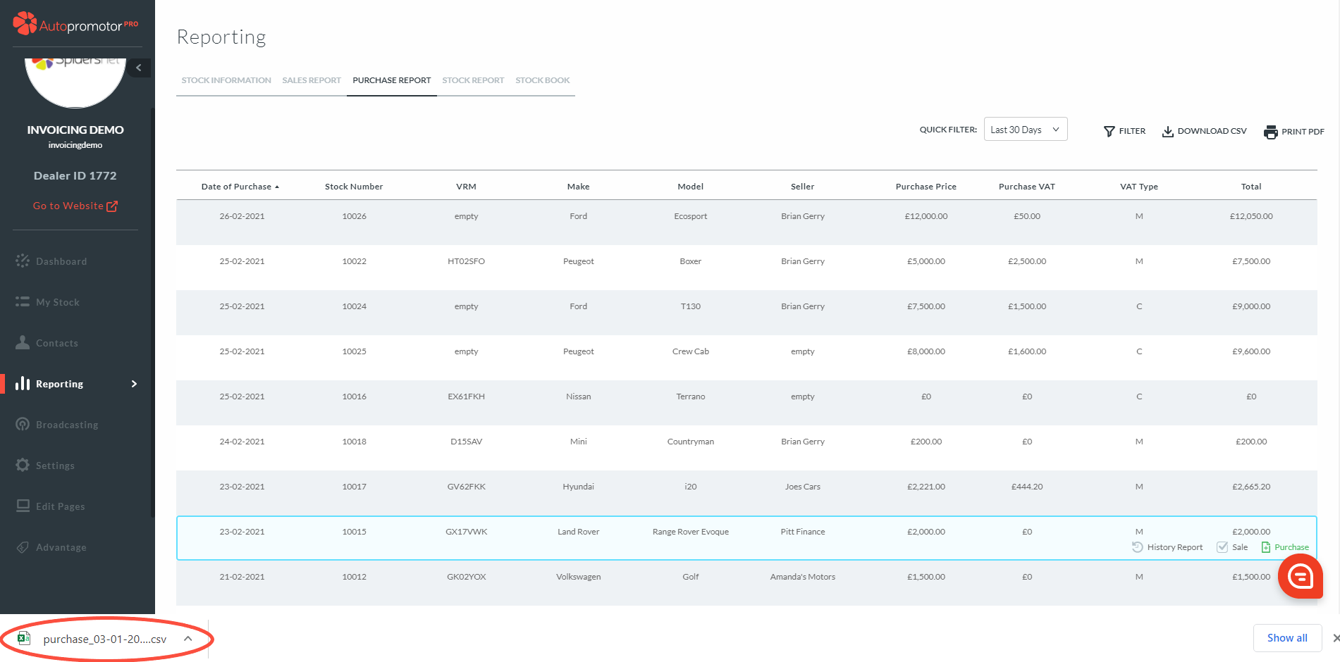 - Click on ‘Download’ CSV’