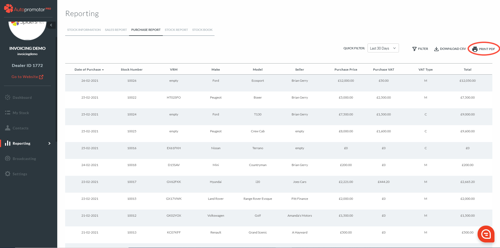 - Click on ‘Print PDF’