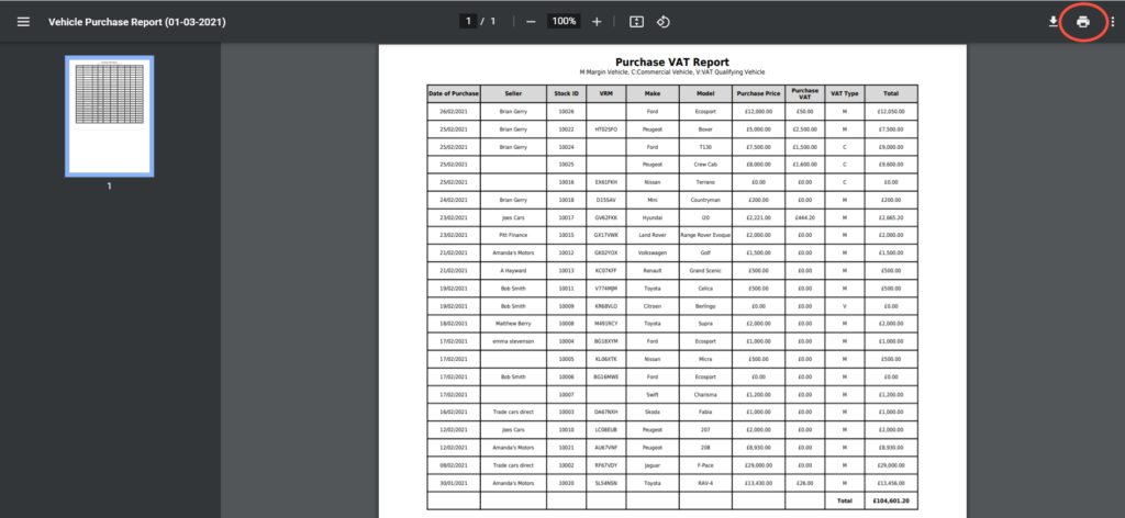 From any of the report screen, you can print your report