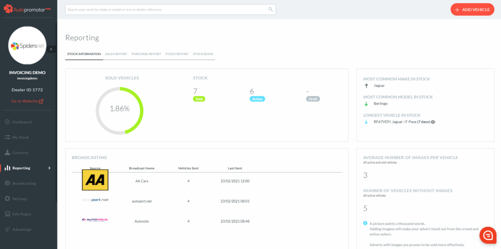 2. On the reporting page, you will be presented with Stock information – This shows you stats on how much stock you have in different statuses.