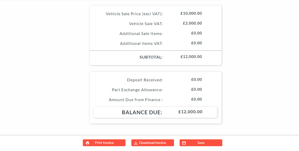 7. Click on ‘Save’ 8. You will see in the sales summary at the bottom of the page the Purchase VAT will automatically be calculated giving you the total sale price.