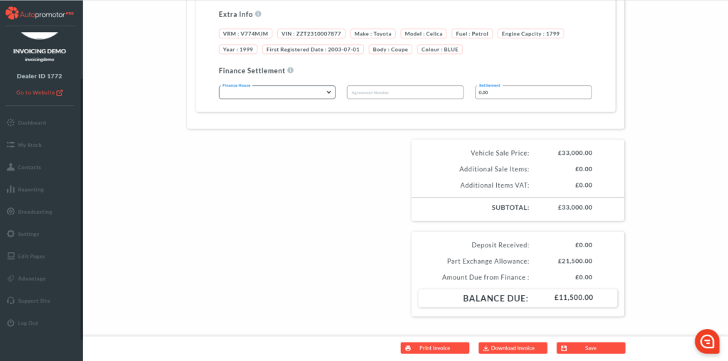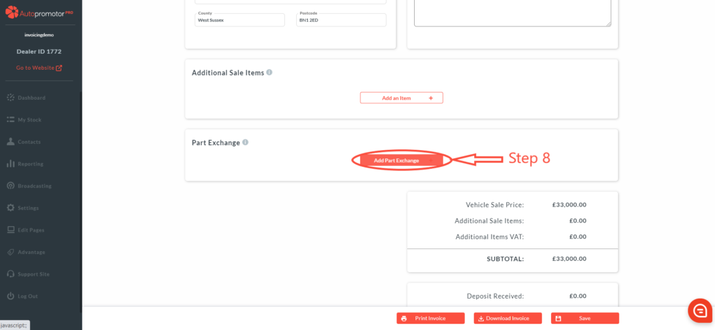 9. The part exchange vehicle will now show up on the sales invoice