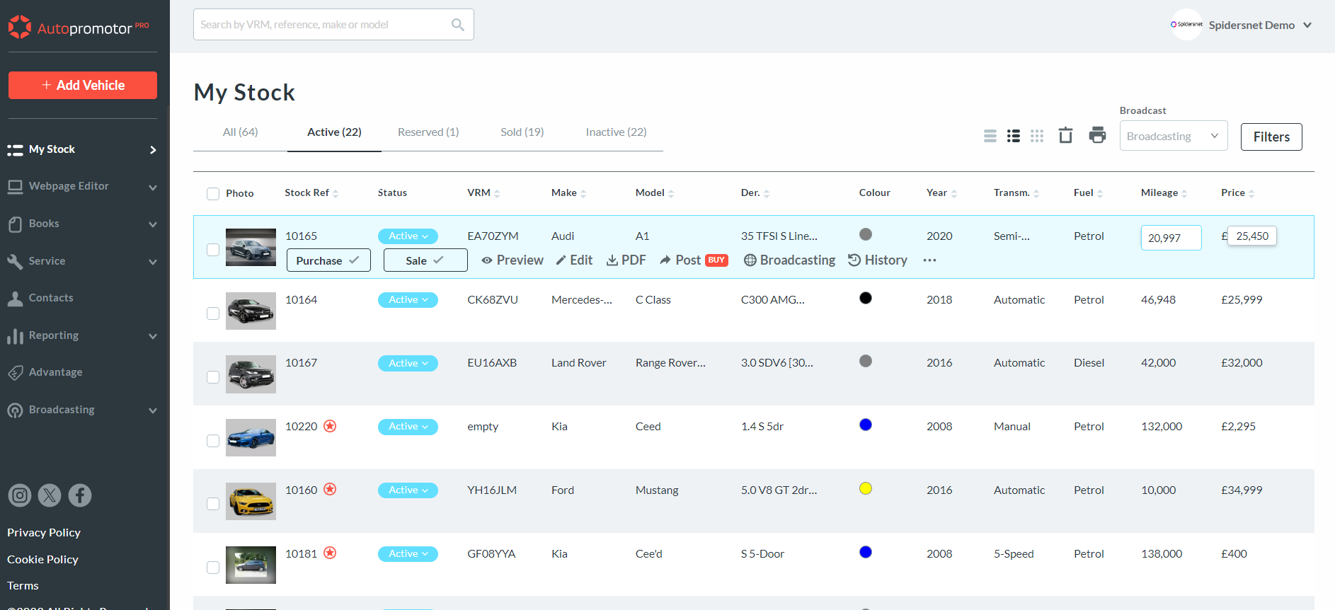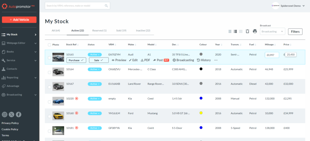 You can now carry out ‘Quick Edits’ on Autopromotor, allowing you to quickly edit the mileage or pricing information of a specific vehicle.