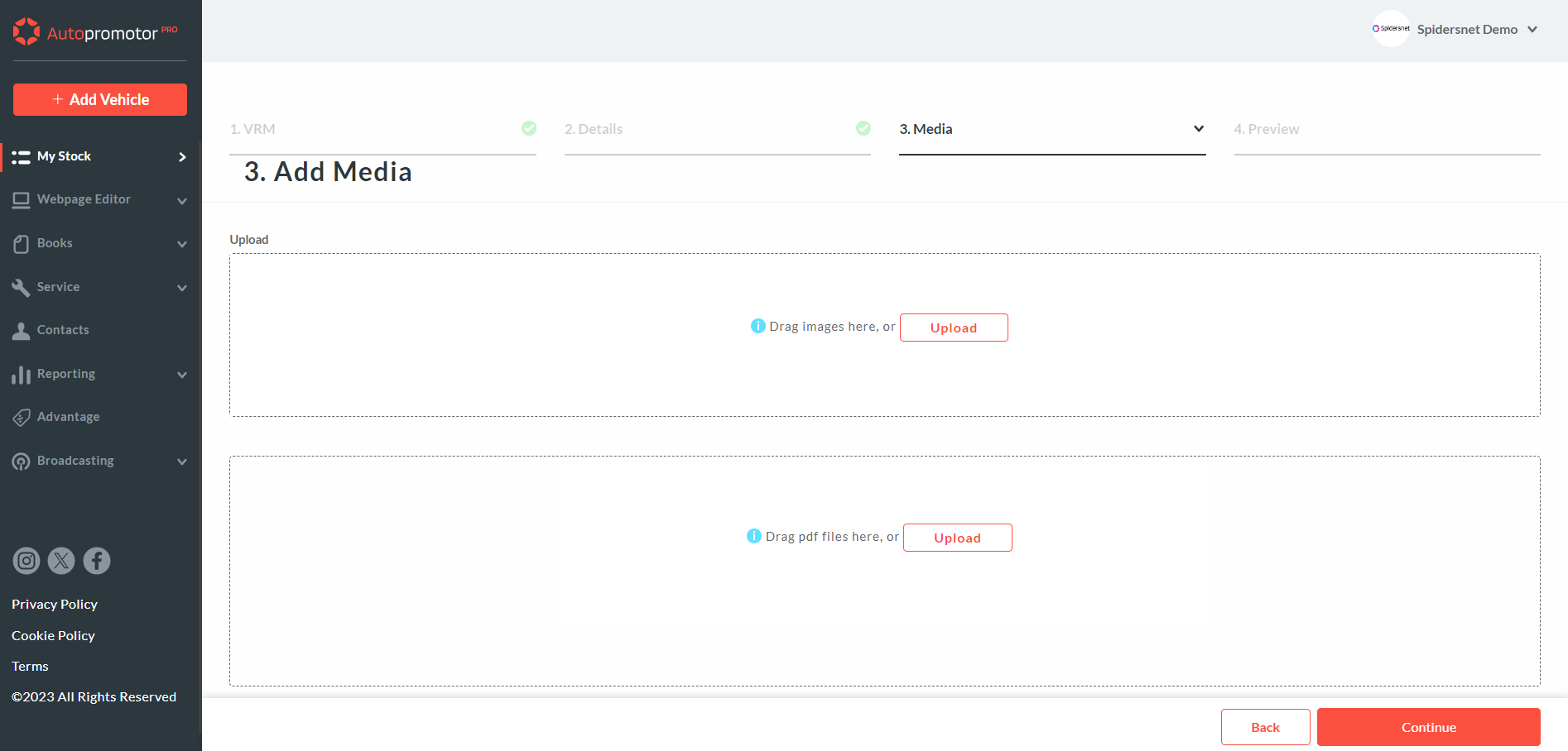 3 – To edit the images, or add new images, click on the ‘Media’ link. Once here you are able to add new images, edit images, and reorder your images. You can also add documents and videos from the Media page.