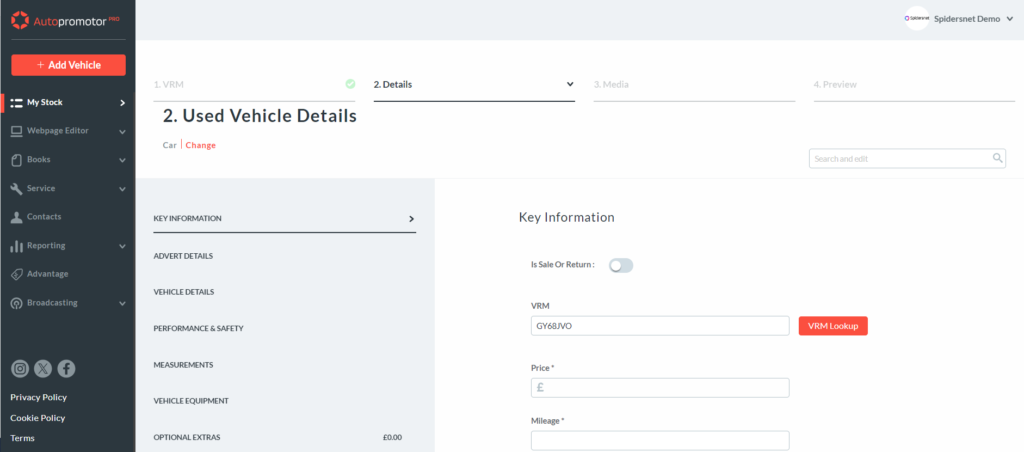 2 – Next you will need to fill in the vehicle’s details. This includes adding the make and model, pricing details, and everything else that will feature in your advert. This includes writing a detailed vehicle description.