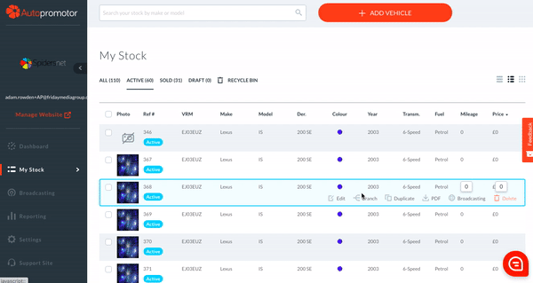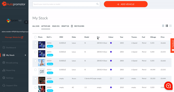 When looking at your stock in Autopromotor you can order your vehicles based on a number of different criteria. For example you may wish to see them in alphabetical order based on the make, or you may wish to order them by price or year. It’s up to you.
