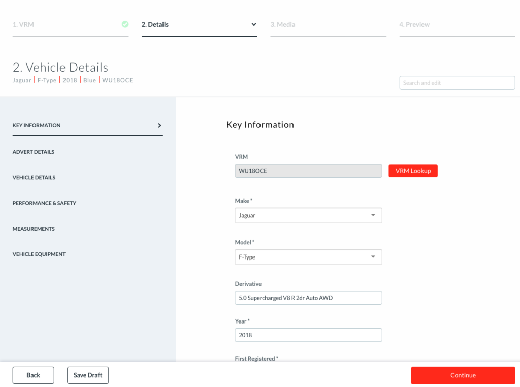We have taken the process and made it much easier and more intuitive to use. The changes we have made are designed to help you add vehicles more easily and quicker than before, whilst also ensuring your ads can display all of the relevant information to customers.