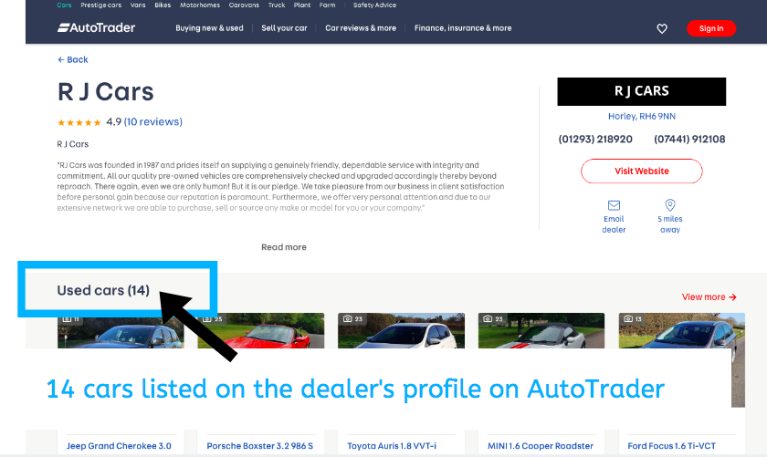 Then here’s their profile on AutoTrader where they are listing a total of 14 vehicles.