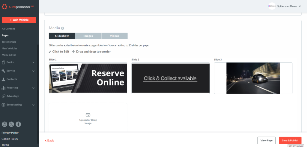 - The URL links can link to internal pages such as Contact Page, Offers Page, Vehicle ads page