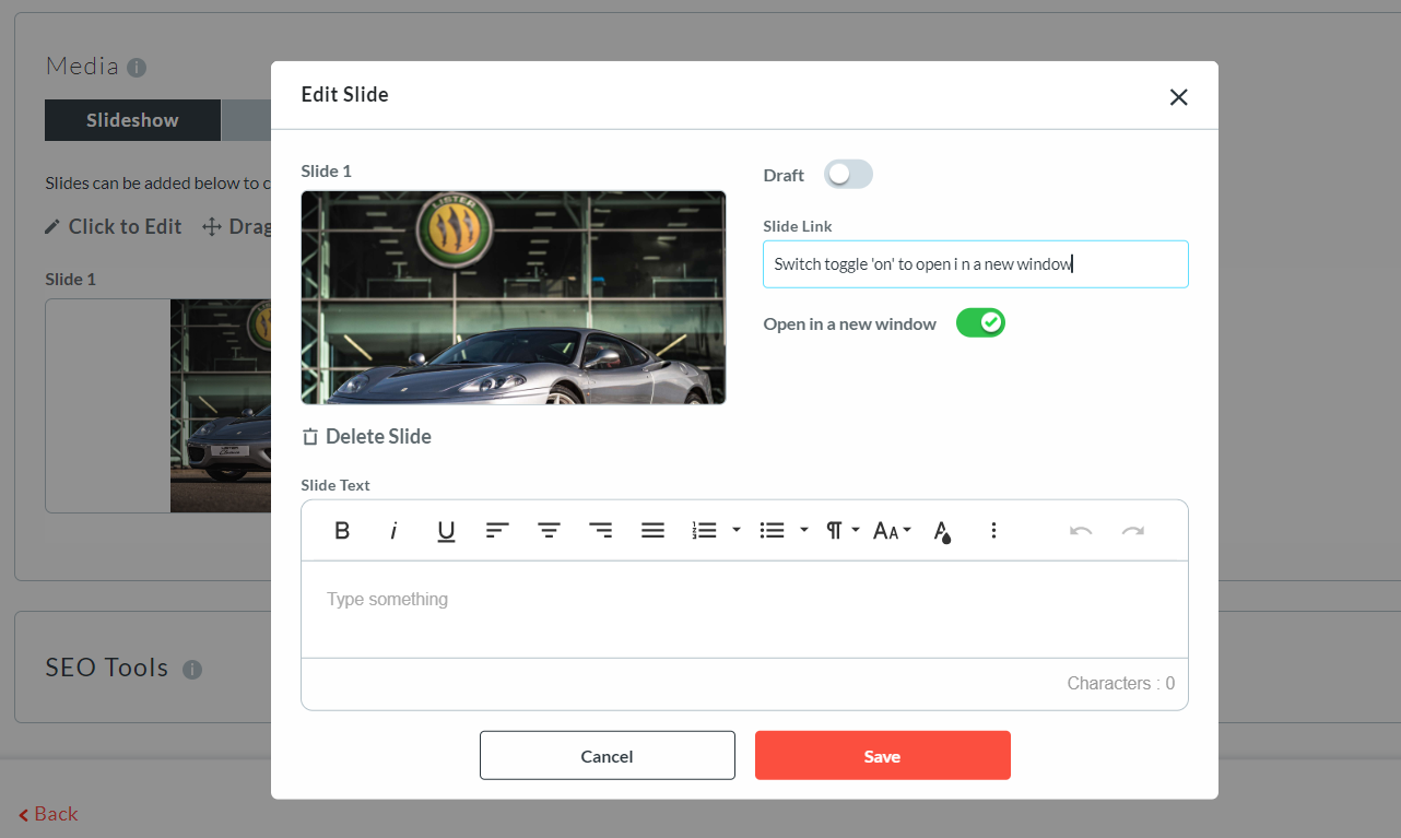 7. Copy and paste the page URL in the ‘Slide Link’ Box