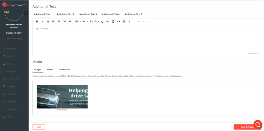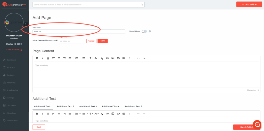 Your page title needs to reflect what the page is regarding. For example, if the content is information about your dealership, you could name the page ‘About us’.