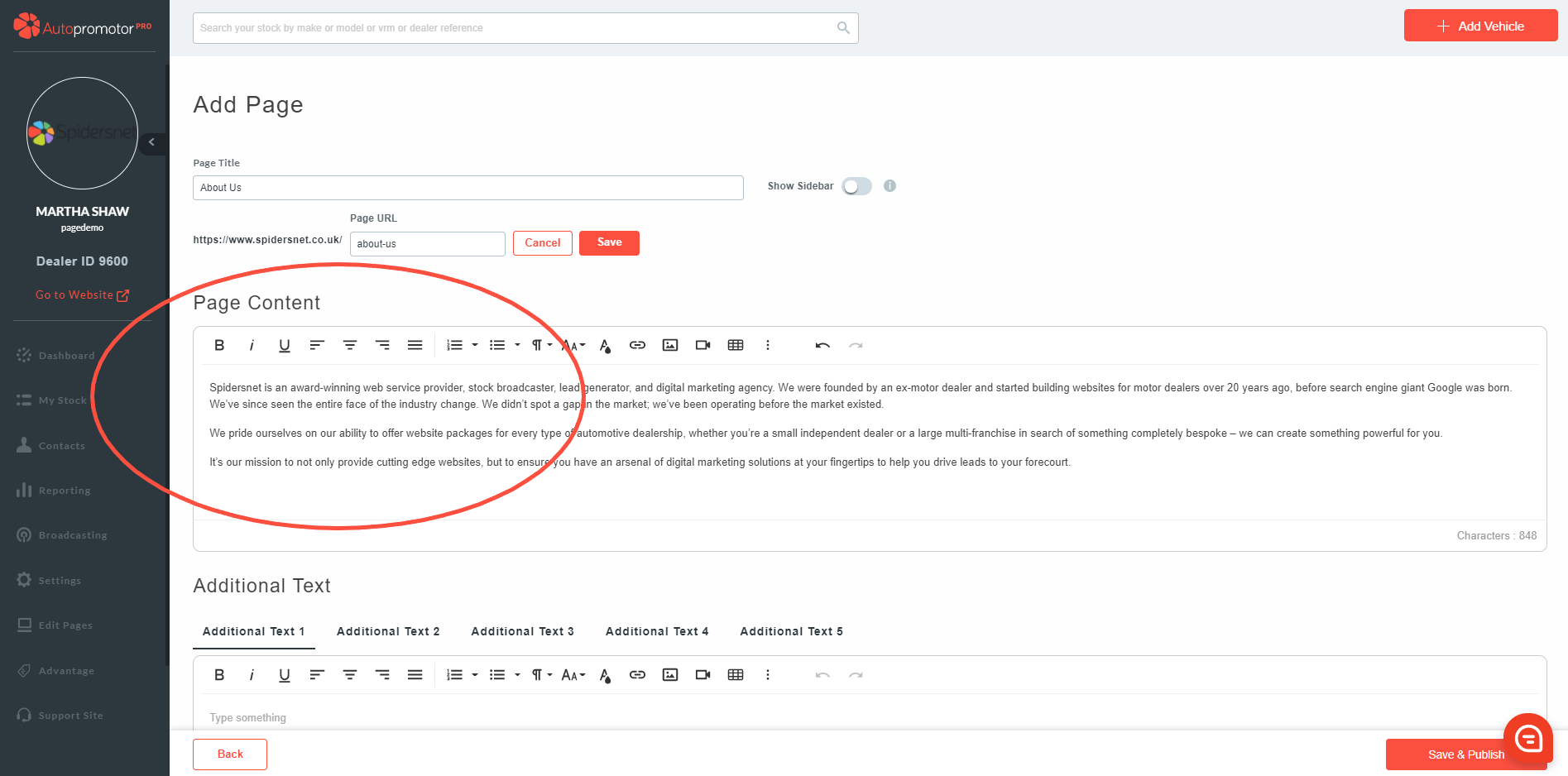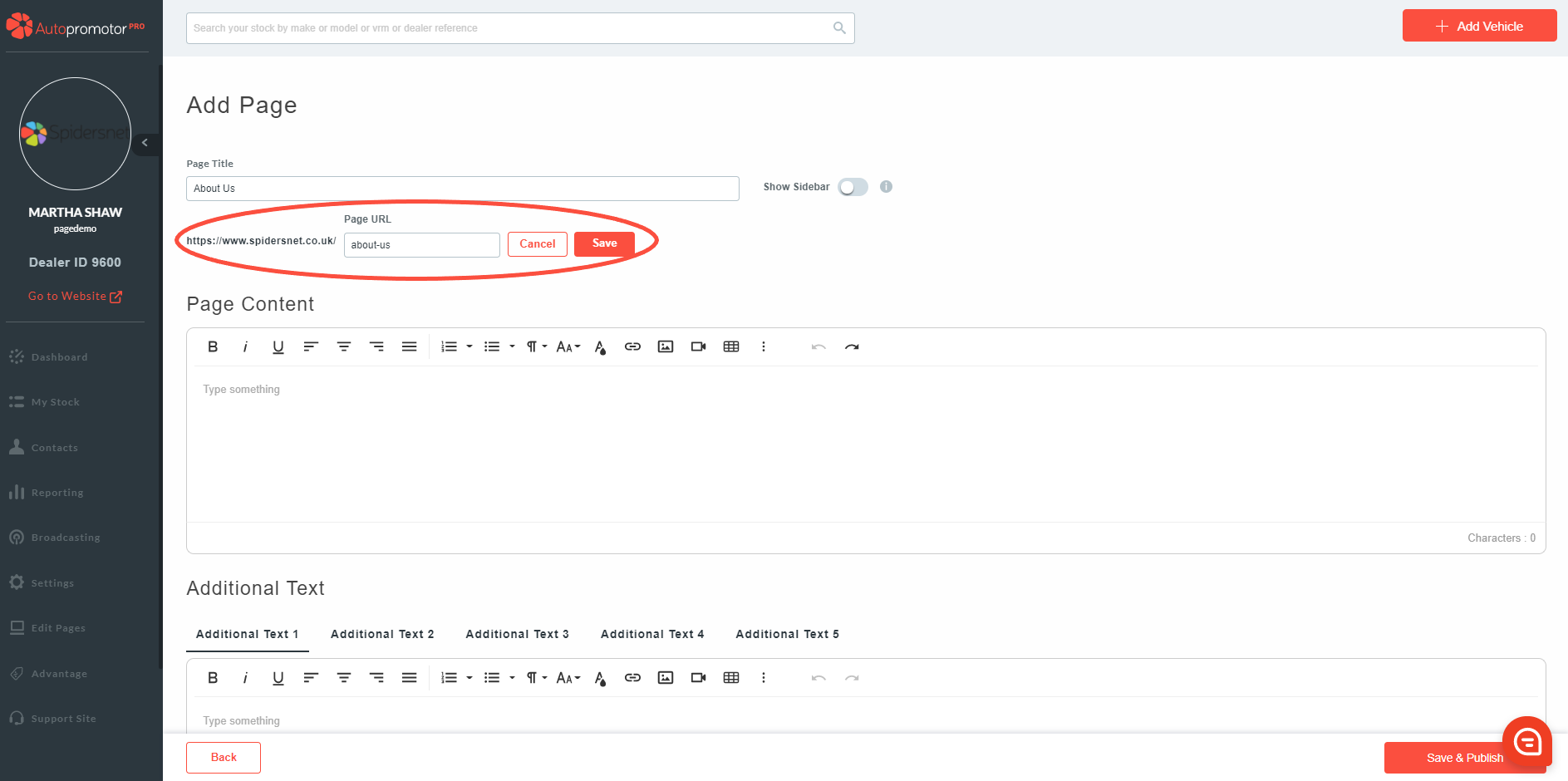 Now you have added a page, you need to input the content of the page. This includes the following information: Page Title, Page URL, Page Content & media.