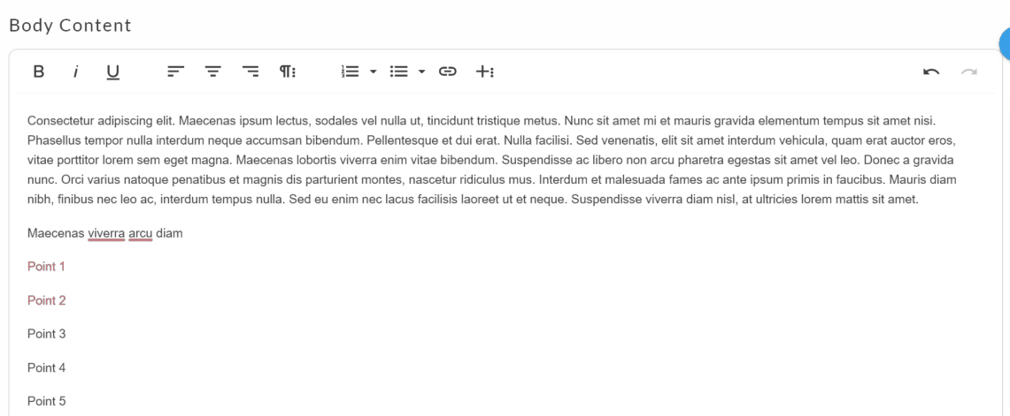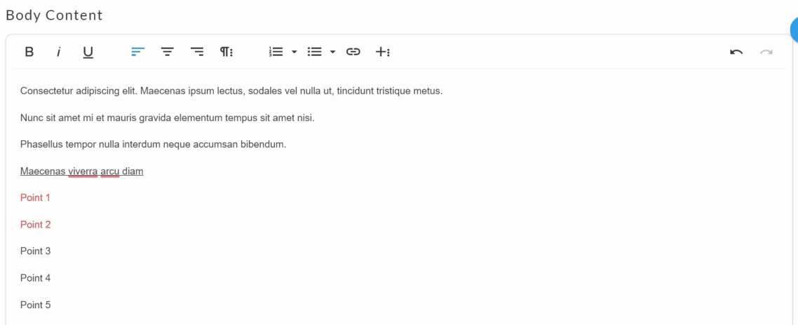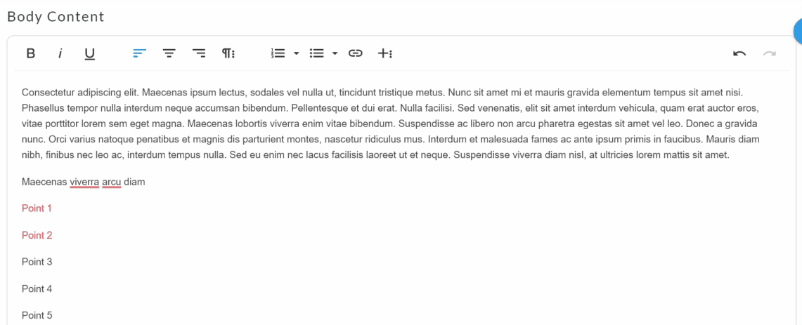 Making basic edits to content on your webpages couldn’t be simplier thanks to our WYSIWYG (What You See Is What You Get) editor. Below are some examples of the formatting options you have available to style your content.